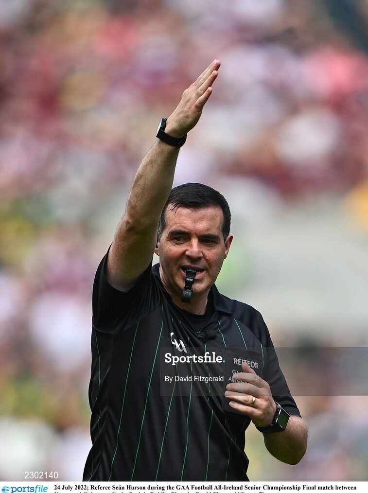 24 July 2022; Referee Seán Hurson during the GAA Football All-Ireland Senior Championship Final match between Kerry and Galway at Croke Park in Dublin. Photo by David Fitzgerald/Sportsfile