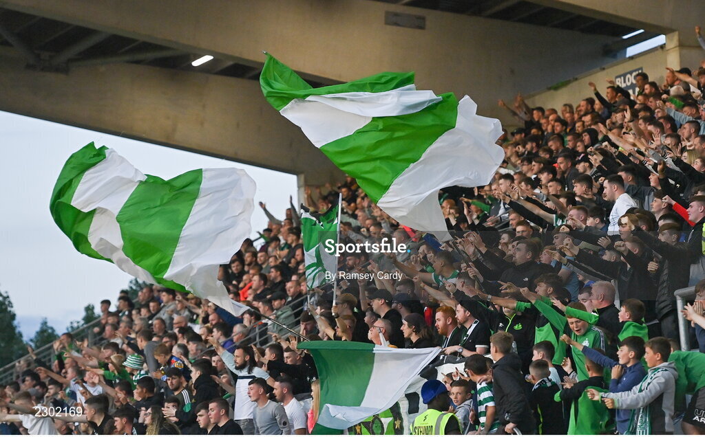 26 July 2022; Shamrock Rovers supporters during the UEFA Champions League 2022-23 Second Qualifying Round Second Leg match between Shamrock Rovers and Ludogorets at Tallaght Stadium in Dublin. Photo by Ramsey Cardy/Sportsfile