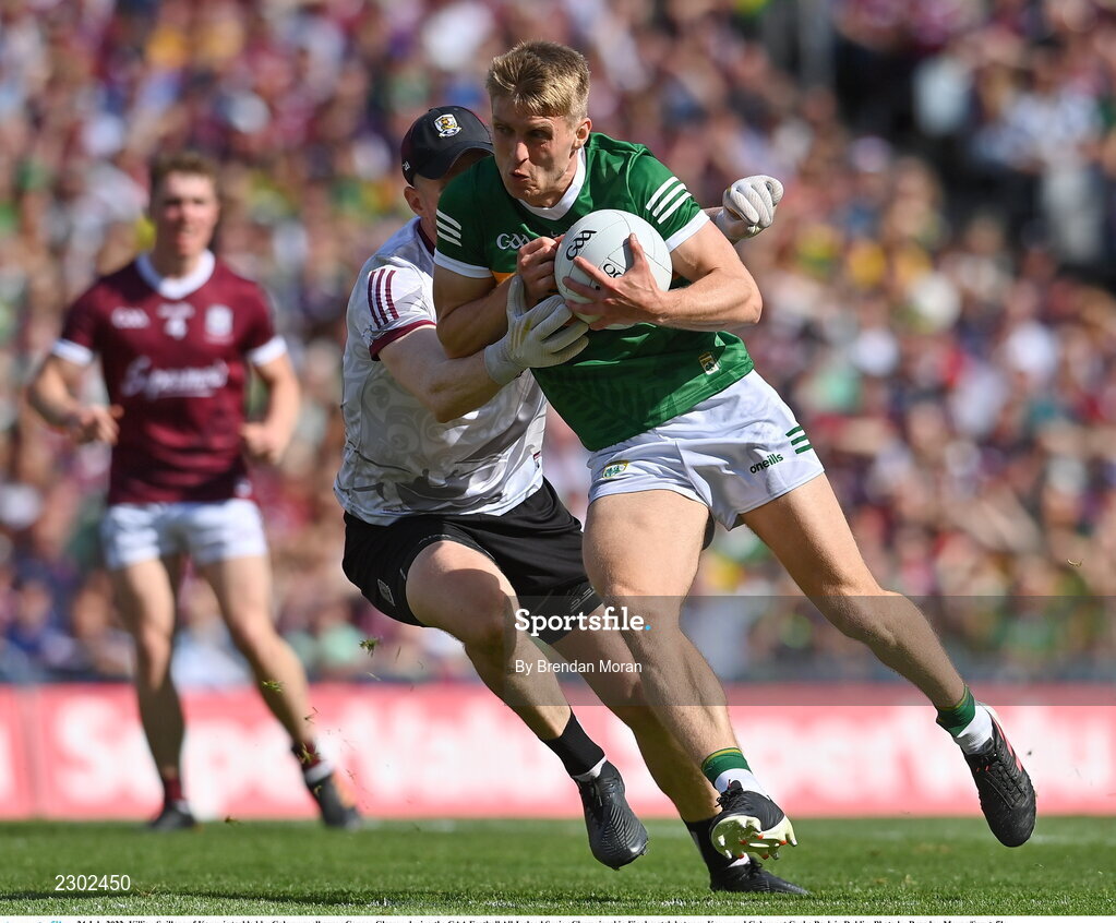 24 July 2022; Killian Spillane of Kerry is tackled by Galway goalkeeper Connor Gleeson during the GAA Football All-Ireland Senior Championship Final match between Kerry and Galway at Croke Park in Dublin. Photo by Brendan Moran/Sportsfile
