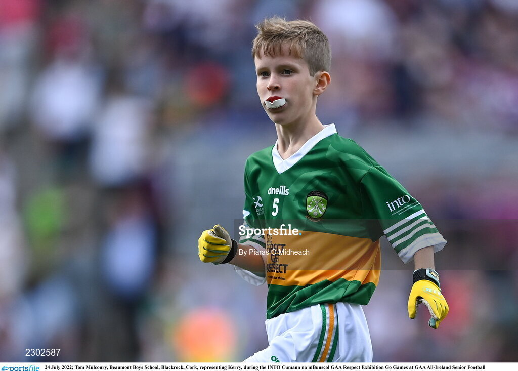24 July 2022; Tom Mulconry, Beaumont Boys School, Blackrock, Cork, representing Kerry, during the INTO Cumann na mBunscol GAA Respect Exhibition Go Games at GAA All-Ireland Senior Football Championship Final match between Kerry and Galway at Croke Park in Dublin. Photo by Piaras Ó Mídheach/Sportsfile