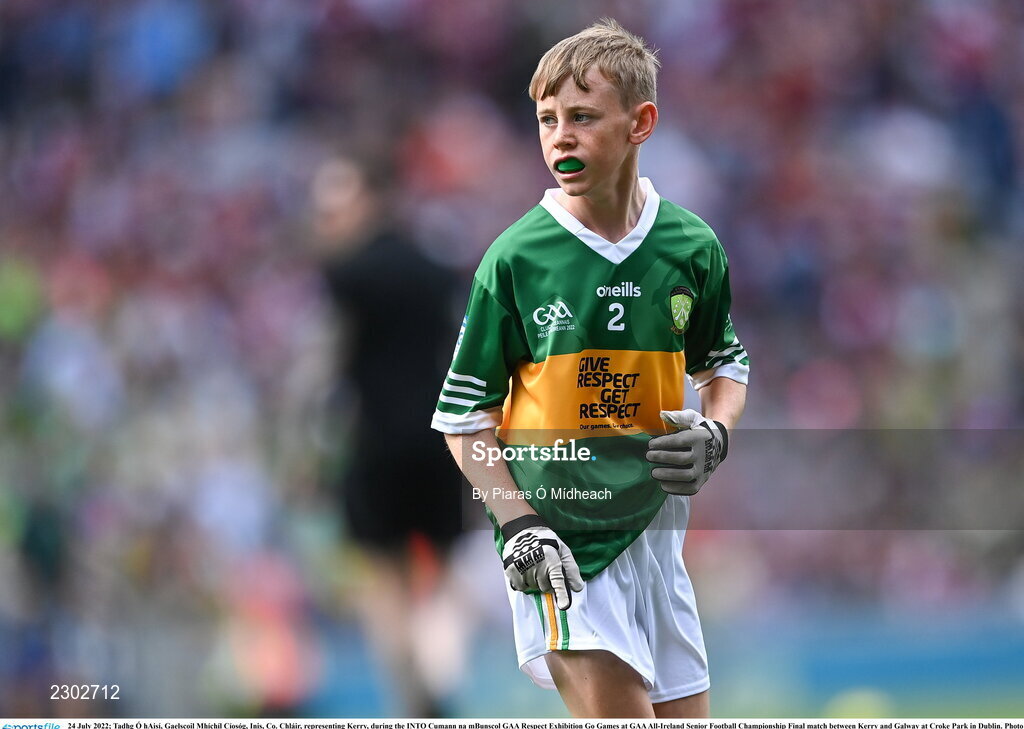 24 July 2022; Tadhg Ó hAisí, Gaelscoil Mhíchíl Cíosóg, Inis, Co. Chláir, representing Kerry, during the INTO Cumann na mBunscol GAA Respect Exhibition Go Games at GAA All-Ireland Senior Football Championship Final match between Kerry and Galway at Croke Park in Dublin. Photo by Piaras Ó Mídheach/Sportsfile