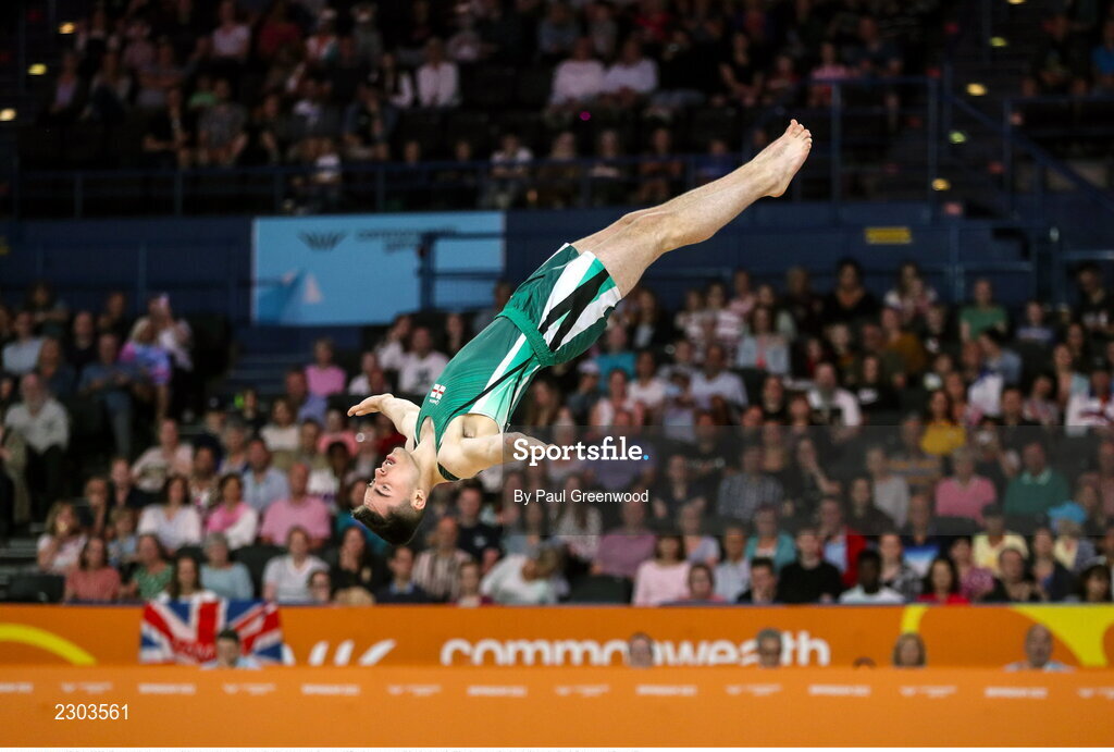29 July 2022; Eamon Montgomery of Northern Ireland competing in the men's floor qualification at Arena Birmingham in Birmingham, England. Photo by Paul Greenwood/Sportsfile