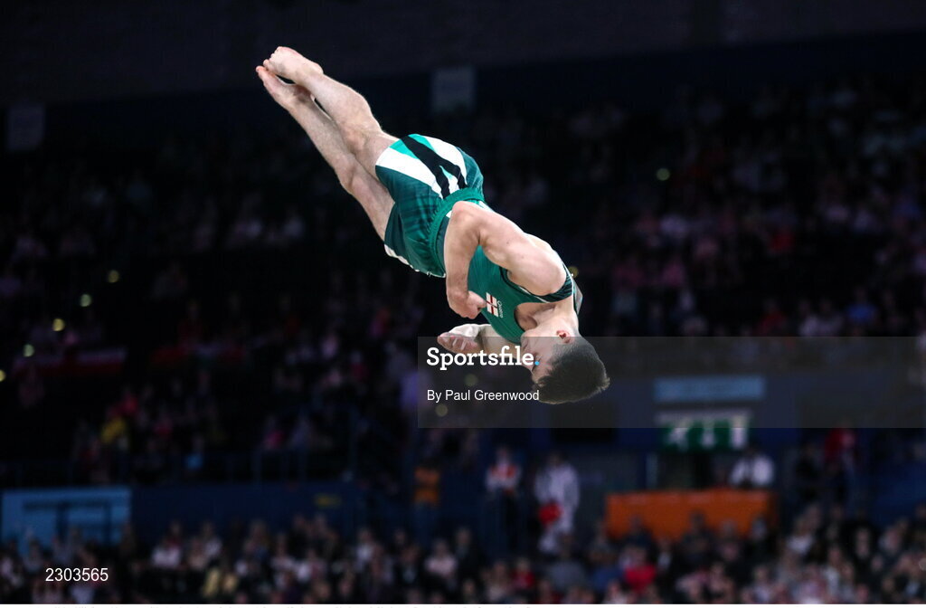 29 July 2022; Eamon Montgomery of Northern Ireland competing in the men's floor qualification at Arena Birmingham in Birmingham, England. Photo by Paul Greenwood/Sportsfile
