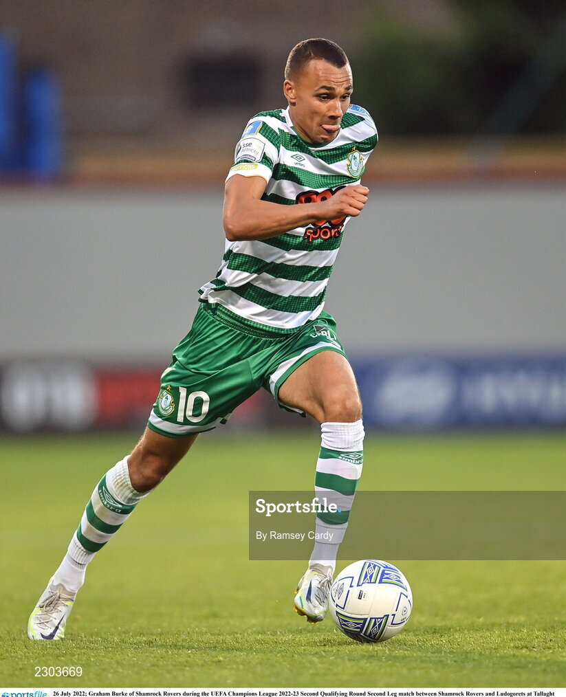 26 July 2022; Graham Burke of Shamrock Rovers during the UEFA Champions League 2022-23 Second Qualifying Round Second Leg match between Shamrock Rovers and Ludogorets at Tallaght Stadium in Dublin. Photo by Ramsey Cardy/Sportsfile