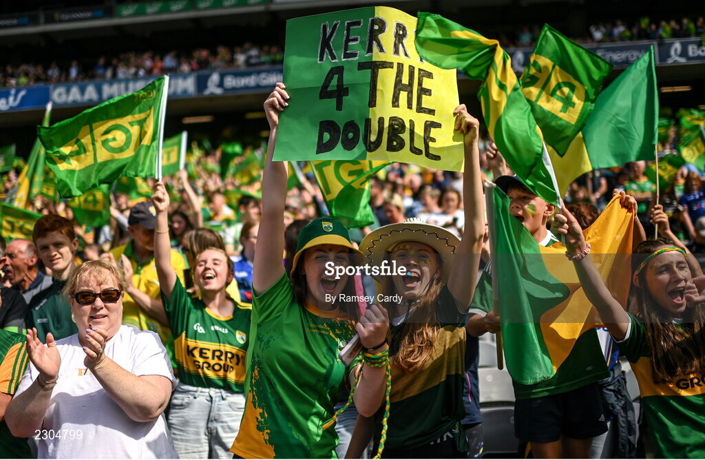 31 July 2022; Kerry supporters during the TG4 All-Ireland Ladies Football Senior Championship Final match between Kerry and Meath at Croke Park in Dublin. Photo by Ramsey Cardy/Sportsfile
