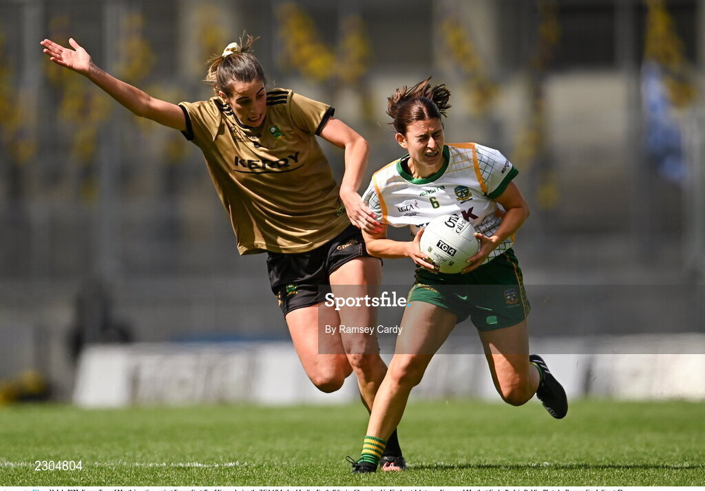 31 July 2022; Emma Troy of Meath in action against Emma Costello of Kerry during the TG4 All-Ireland Ladies Football Senior Championship Final match between Kerry and Meath at Croke Park in Dublin. Photo by Ramsey Cardy/Sportsfile