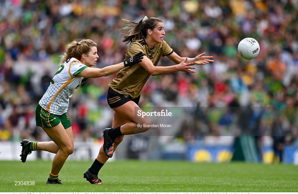 31 July 2022; Emma Costello of Kerry in action against Orla Byrne of Meath during the TG4 All-Ireland Ladies Football Senior Championship Final match between Kerry and Meath at Croke Park in Dublin. Photo by Brendan Moran/Sportsfile