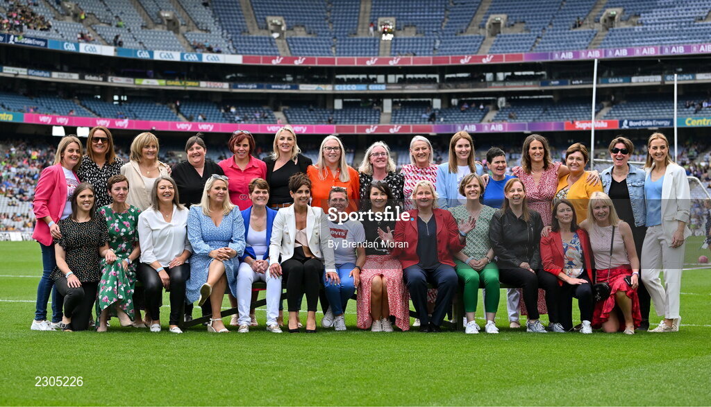31 July 2022; The Monaghan Jubilee teams from 1997 and 1998 are introduced before the TG4 All-Ireland Ladies Football Championship Finals at Croke Park in Dublin. Photo by Brendan Moran/Sportsfile