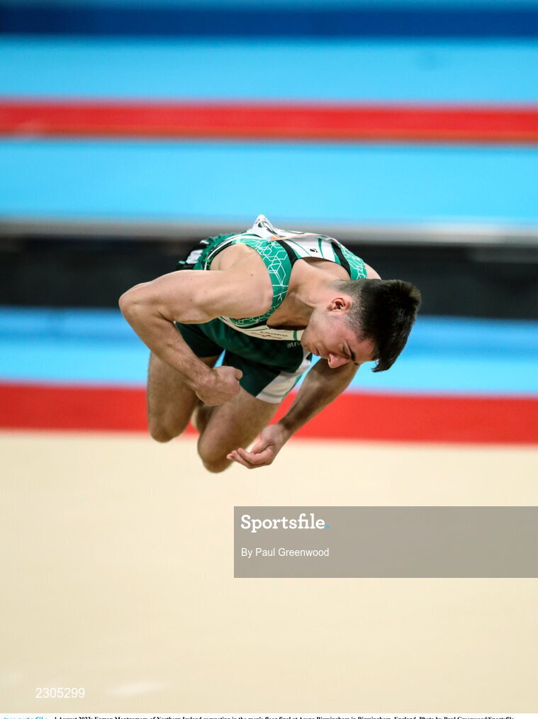 1 August 2022; Eamon Montgomery of Northern Ireland competing in the men's floor final at Arena Birmingham in Birmingham, England. Photo by Paul Greenwood/Sportsfile