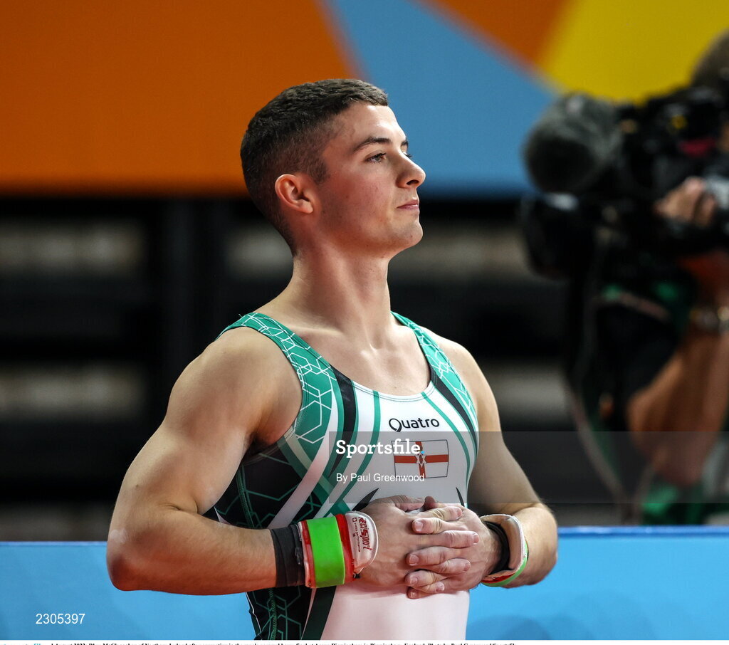 1 August 2022; Rhys McClenaghan of Northern Ireland after competing in the men's pommel horse final at Arena Birmingham in Birmingham, England. Photo by Paul Greenwood/Sportsfile
