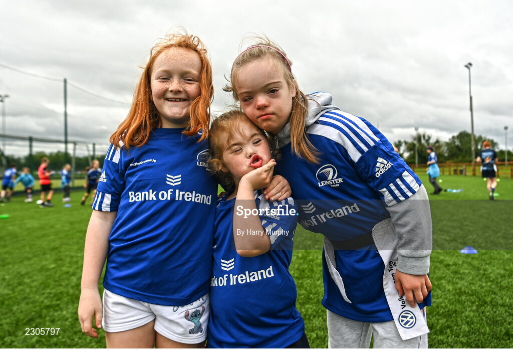 3 August 2022; Participants, from left, Kate Griffin, Caoimhe McNally and Maria Gilmartin during a Leinster Rugby Inclusion Camp at North Kildare Rugby Club in Kilcock, Kildare. Photo by Harry Murphy/Sportsfile