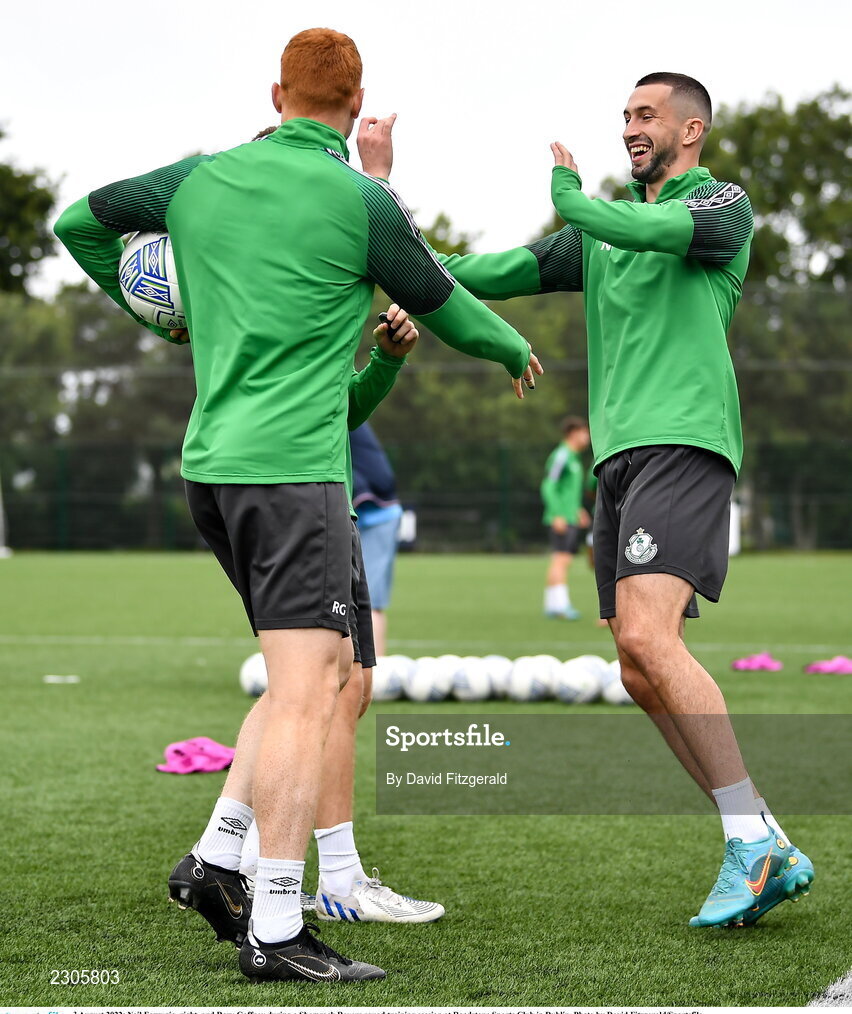 3 August 2022; Neil Farrugia, right, and Rory Gaffney during a Shamrock Rovers squad training session at Roadstone Sports Club in Dublin. Photo by David Fitzgerald/Sportsfile