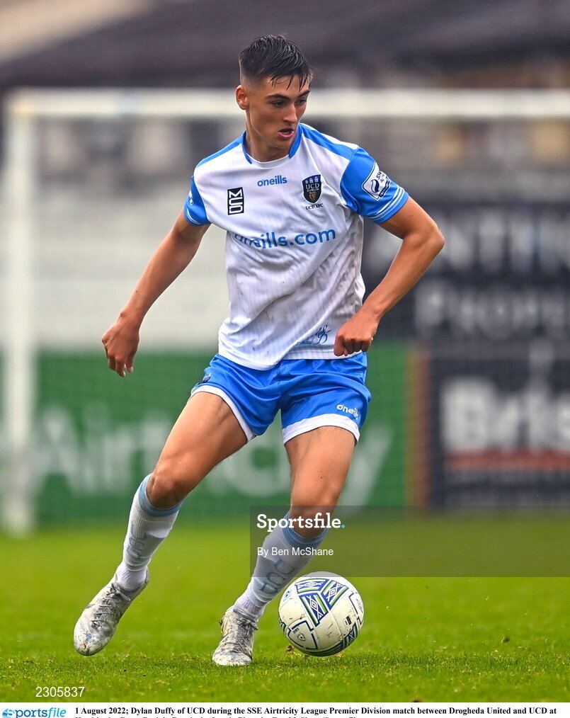 1 August 2022; Dylan Duffy of UCD during the SSE Airtricity League Premier Division match between Drogheda United and UCD at Head in the Game Park in Drogheda, Louth. Photo by Ben McShane/Sportsfile