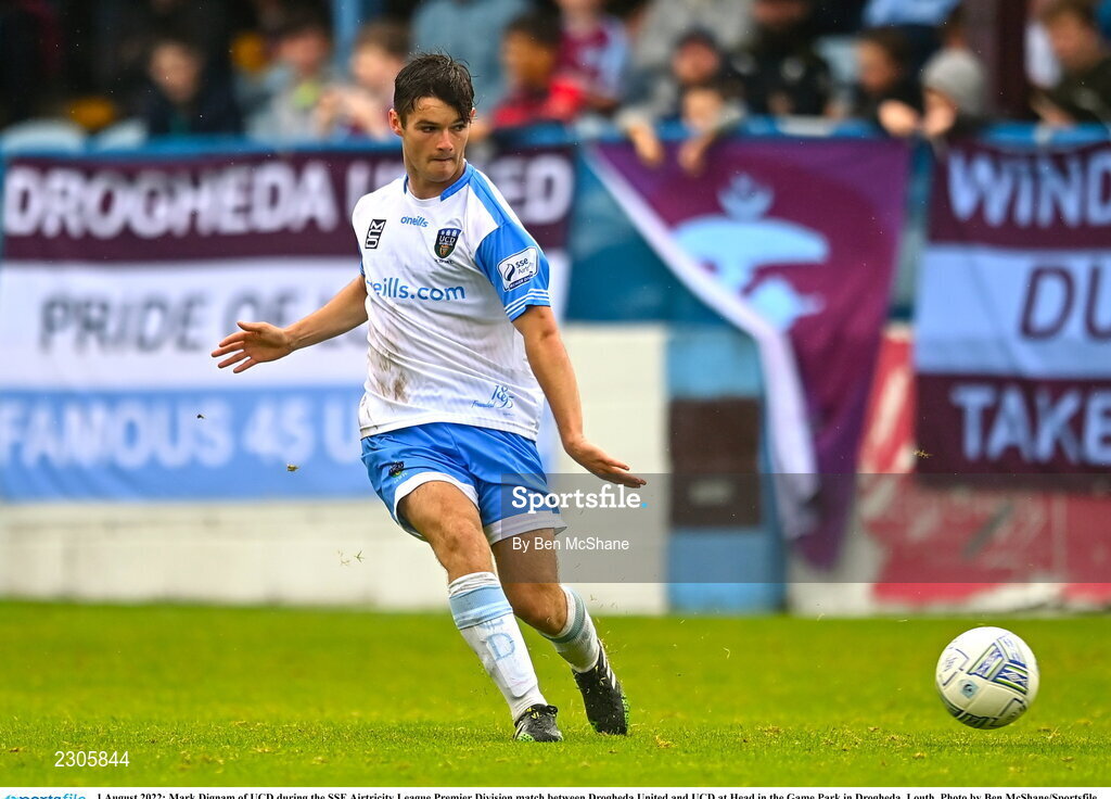 1 August 2022; Mark Dignam of UCD during the SSE Airtricity League Premier Division match between Drogheda United and UCD at Head in the Game Park in Drogheda, Louth. Photo by Ben McShane/Sportsfile