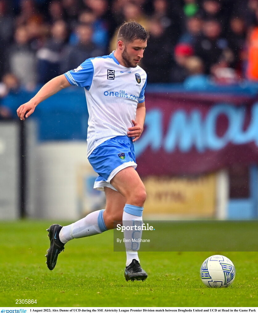 1 August 2022; Alex Dunne of UCD during the SSE Airtricity League Premier Division match between Drogheda United and UCD at Head in the Game Park in Drogheda, Louth. Photo by Ben McShane/Sportsfile