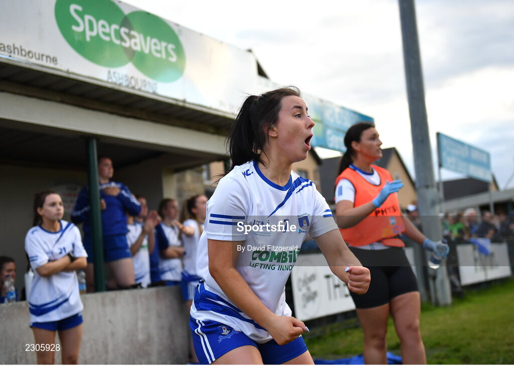 3 August 2022; Hannah Haughey of Monaghan reacts from the sideline late in the game during the ZuCar All-Ireland Ladies Football Minor B Championship Final match between Monaghan and Longford at Donaghmore Ashbourne GAA club in Ashbourne, Meath. Photo by David Fitzgerald/Sportsfile