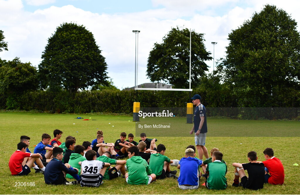 4 August 2022; Coach Luke Sloyan speaks to participants during the Bank of Ireland Leinster Rugby School of Excellence at The King's Hospital School in Dublin. Photo by Ben McShane/Sportsfile
