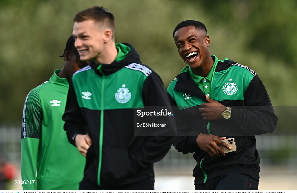 4 August 2022; Aidomo Emakhu of Shamrock Rovers before the UEFA Europa League third qualifying round first leg match between Shamrock Rovers and Shkupi at Tallaght Stadium in Dublin. Photo by Eóin Noonan/Sportsfile