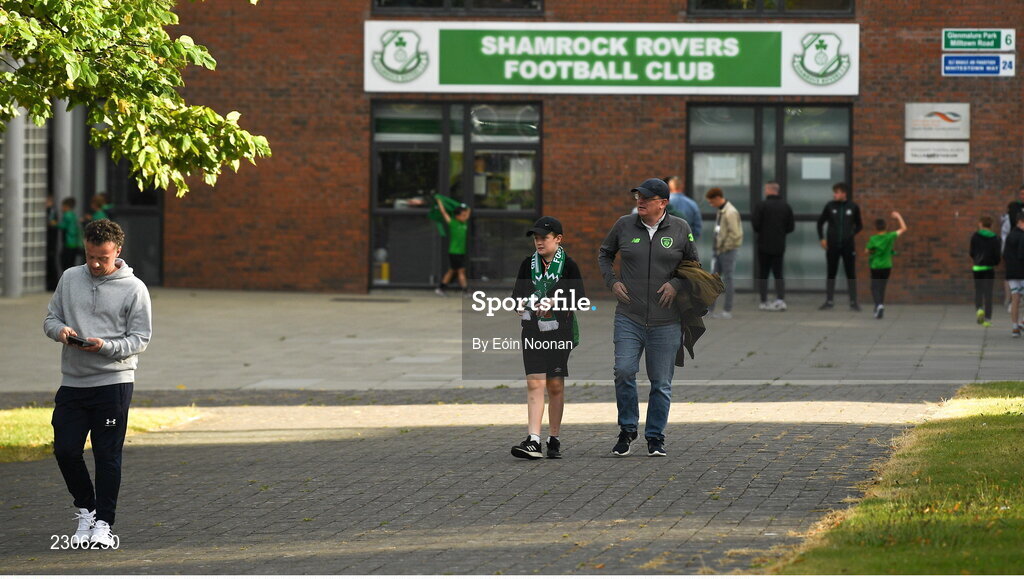4 August 2022; Shamrock Rovers supporters outside Tallaght Stadium before the UEFA Europa League third qualifying round first leg match between Shamrock Rovers and Shkupi at Tallaght Stadium in Dublin. Photo by Eóin Noonan/Sportsfile