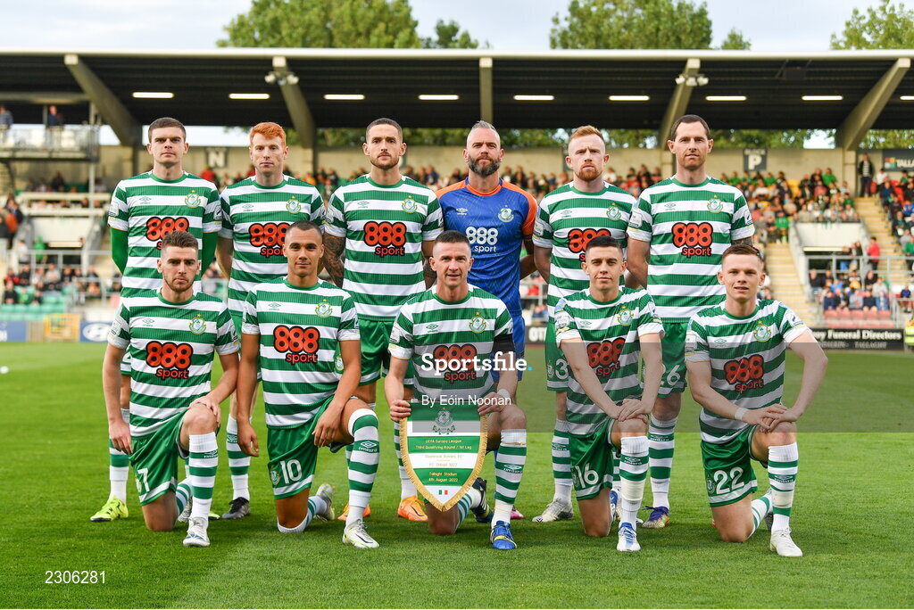 4 August 2022; Shamrock Rovers team before the UEFA Europa League third qualifying round first leg match between Shamrock Rovers and Shkupi at Tallaght Stadium in Dublin. Photo by Eóin Noonan/Sportsfile