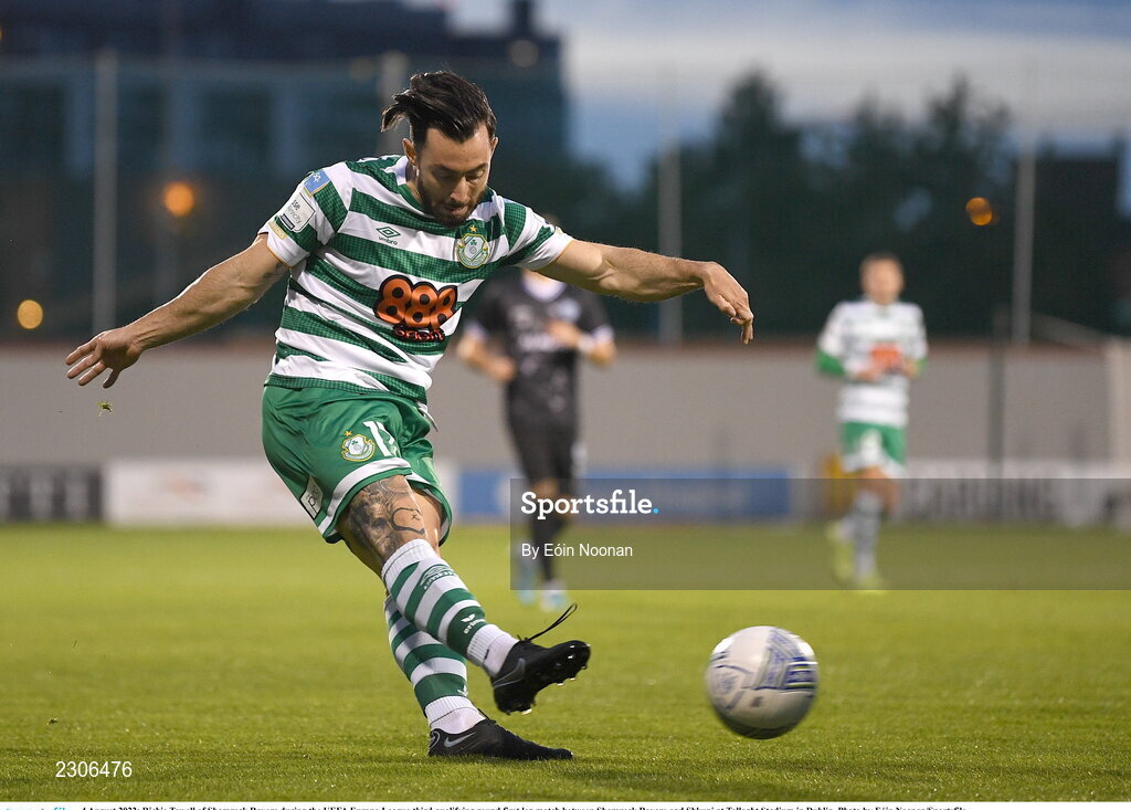 4 August 2022; Richie Towell of Shamrock Rovers during the UEFA Europa League third qualifying round first leg match between Shamrock Rovers and Shkupi at Tallaght Stadium in Dublin. Photo by Eóin Noonan/Sportsfile