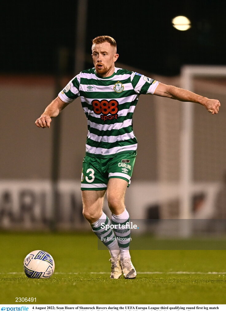 4 August 2022; Sean Hoare of Shamrock Rovers during the UEFA Europa League third qualifying round first leg match between Shamrock Rovers and Shkupi at Tallaght Stadium in Dublin. Photo by Eóin Noonan/Sportsfile