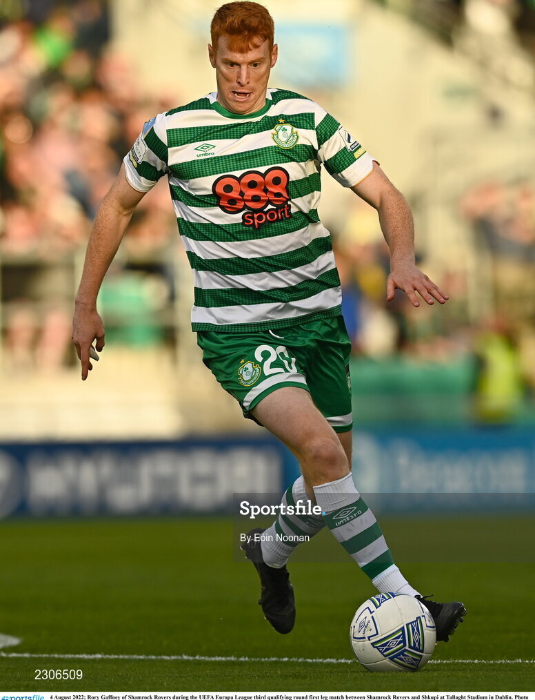 4 August 2022; Rory Gaffney of Shamrock Rovers during the UEFA Europa League third qualifying round first leg match between Shamrock Rovers and Shkupi at Tallaght Stadium in Dublin. Photo by Eóin Noonan/Sportsfile