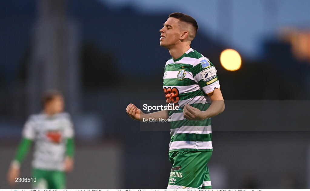 4 August 2022; Gary O'Neill of Shamrock Rovers reacts during the UEFA Europa League third qualifying round first leg match between Shamrock Rovers and Shkupi at Tallaght Stadium in Dublin. Photo by Eóin Noonan/Sportsfile