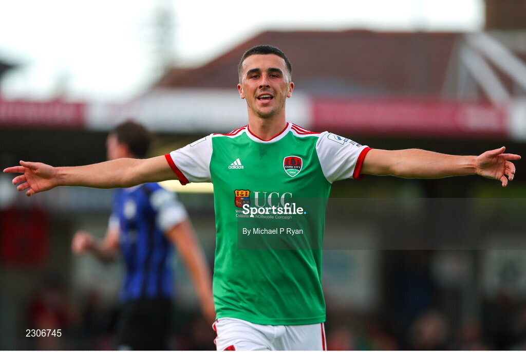 5 August 2022; Barry Coffey of Cork City celebrates after scoring his side's first goal during the SSE Airtricity League First Division match between Cork City and Athlone Town at Turners Cross in Cork. Photo by Michael P Ryan/Sportsfile