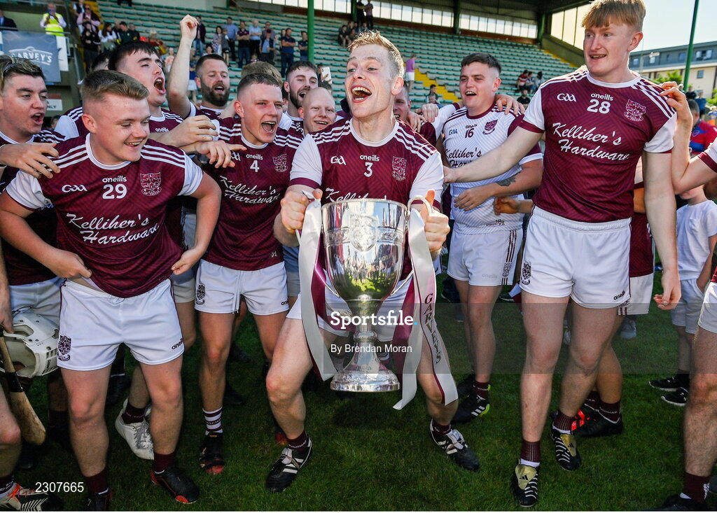 7 August 2022; Muiris Delaney of Causeway celebrates with the Neilus Flynn cup after the Kerry County Senior Hurling Championship Final match between Ballyduff and Causeway at Austin Stack Park in Tralee, Kerry. Photo by Brendan Moran/Sportsfile