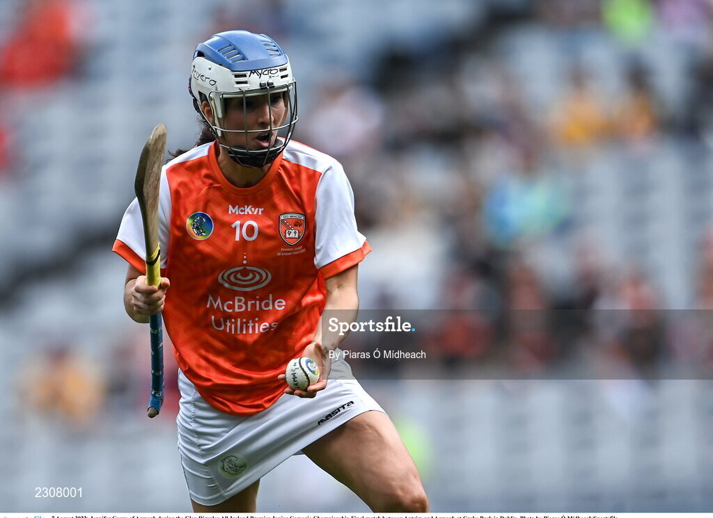 7 August 2022; Jennifer Curry of Armagh during the Glen Dimplex All-Ireland Premier Junior Camogie Championship Final match between Antrim and Armagh at Croke Park in Dublin. Photo by Piaras Ó Mídheach/Sportsfile