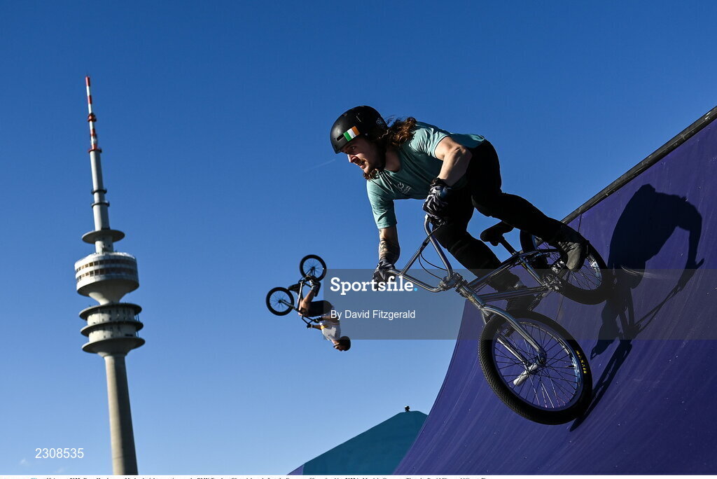 10 August 2022; Ryan Henderson of Ireland, right, practices on the BMX Track at Olympiaberg before the European Championships 2022 in Munich, Germany. Photo by David Fitzgerald/Sportsfile