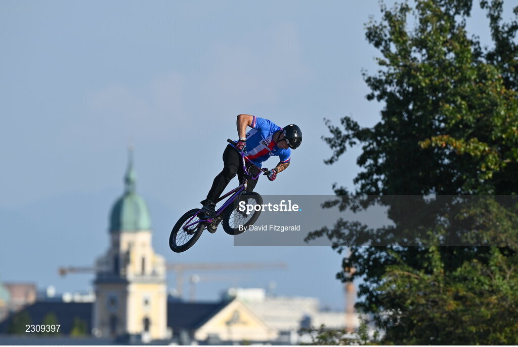 11 August 2022; Tomáš Beran of Czech Republic competing in the Cycling BMX Freestyle qualification round during day 1 of the European Championships 2022 at Olympiaberg in Munich, Germany. Photo by David Fitzgerald/Sportsfile