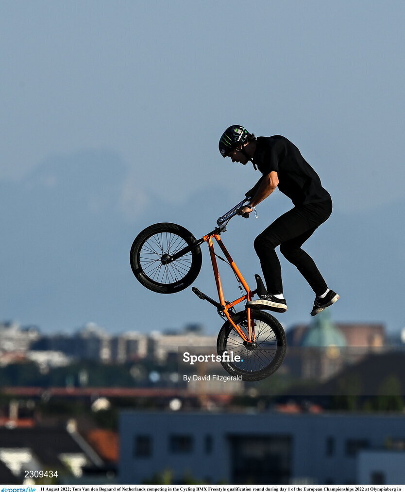 11 August 2022; Tom Van den Bogaard of Netherlands competing in the Cycling BMX Freestyle qualification round during day 1 of the European Championships 2022 at Olympiaberg in Munich, Germany. Photo by David Fitzgerald/Sportsfile