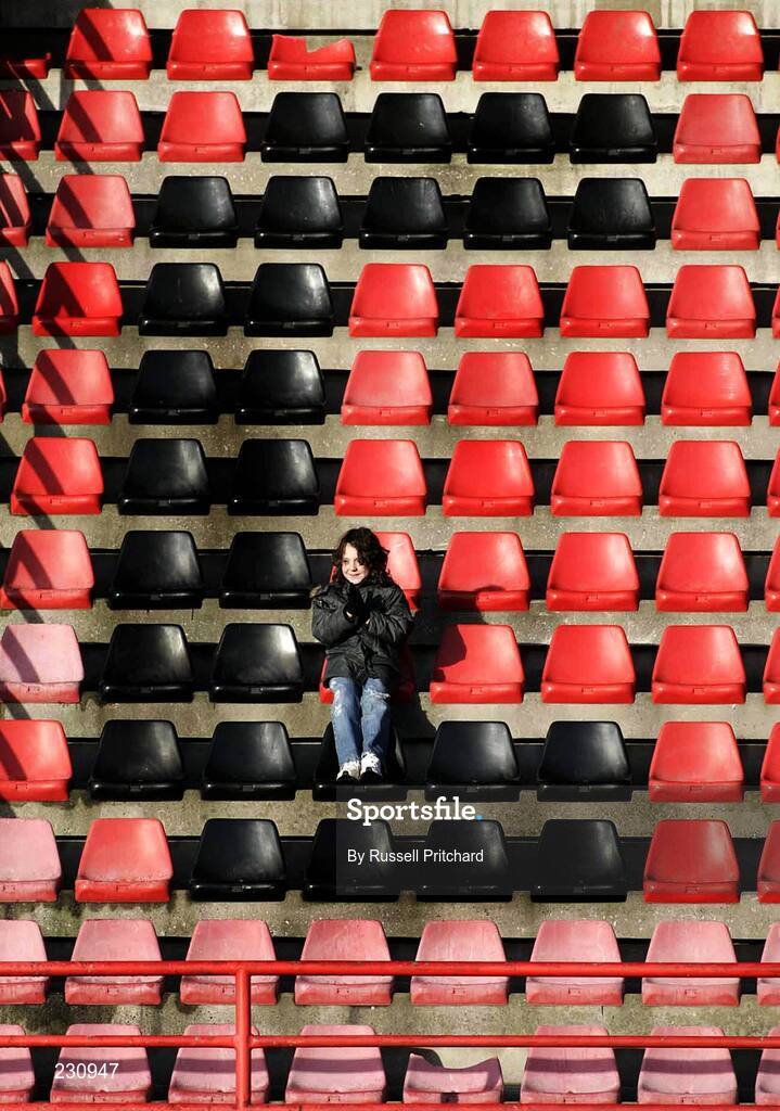 9 December 2006; Crusaders fan Paul Wilson waits for his dad to come with his cup of the tea. Carnegie Premier League, Crusaders v Glentoran, Seaview, Belfast. Picture credit: Russell Pritchard / SPORTSFILE