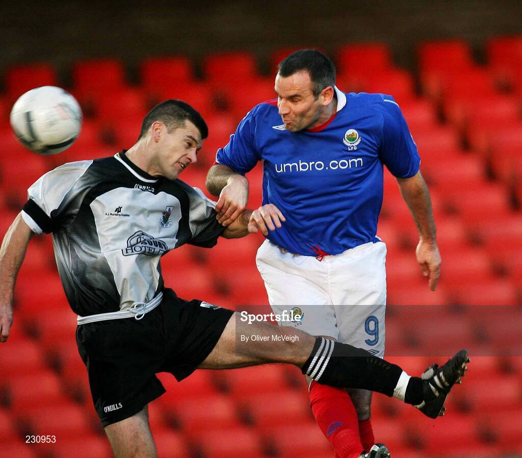 9 December 2006; Glen Ferguson, Linfield, in action against Paddy McLaughlin, Newry City. Carnegie Premier League, Linfield v Newry City, Windsor Park, Belfast. Picture credit: Oliver McVeigh / SPORTSFILE