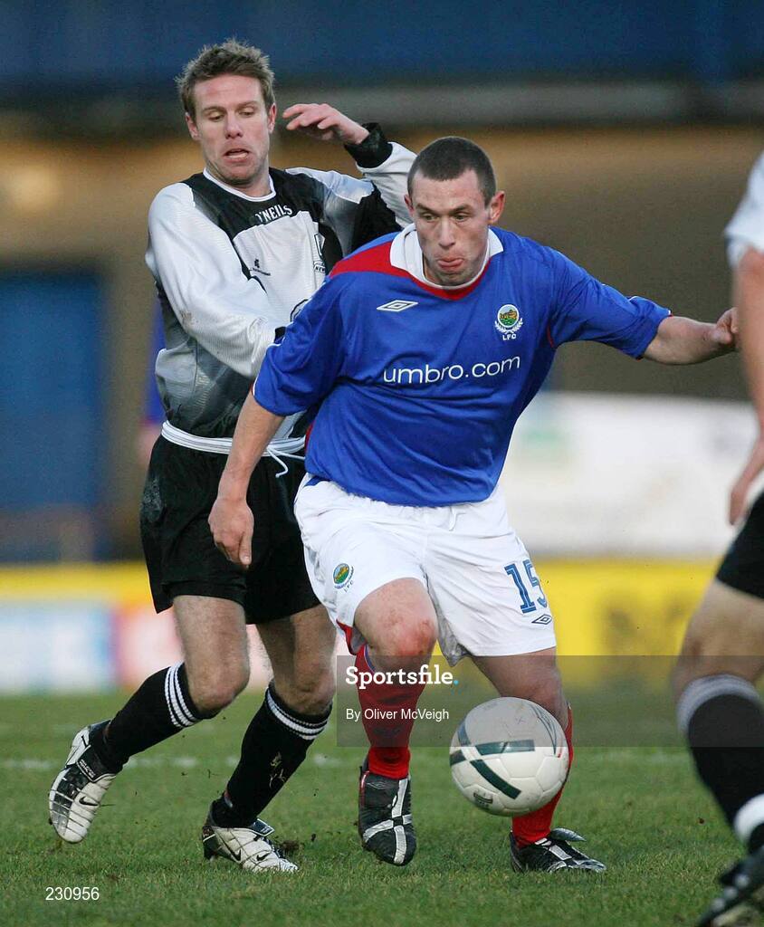 9 December 2006; Mark Dickson, Linfield, in action against Steven Ferguson, Newry City. Carnegie Premier League, Linfield v Newry City, Windsor Park, Belfast. Picture credit: Oliver McVeigh / SPORTSFILE