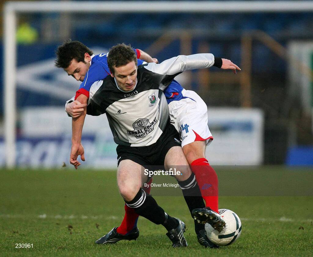 9 December 2006; Kevin Keegan, Newry City, in action against Thomas Stewart, Linfield. Carnegie Premier League, Linfield v Newry City, Windsor Park, Belfast. Picture credit: Oliver McVeigh / SPORTSFILE