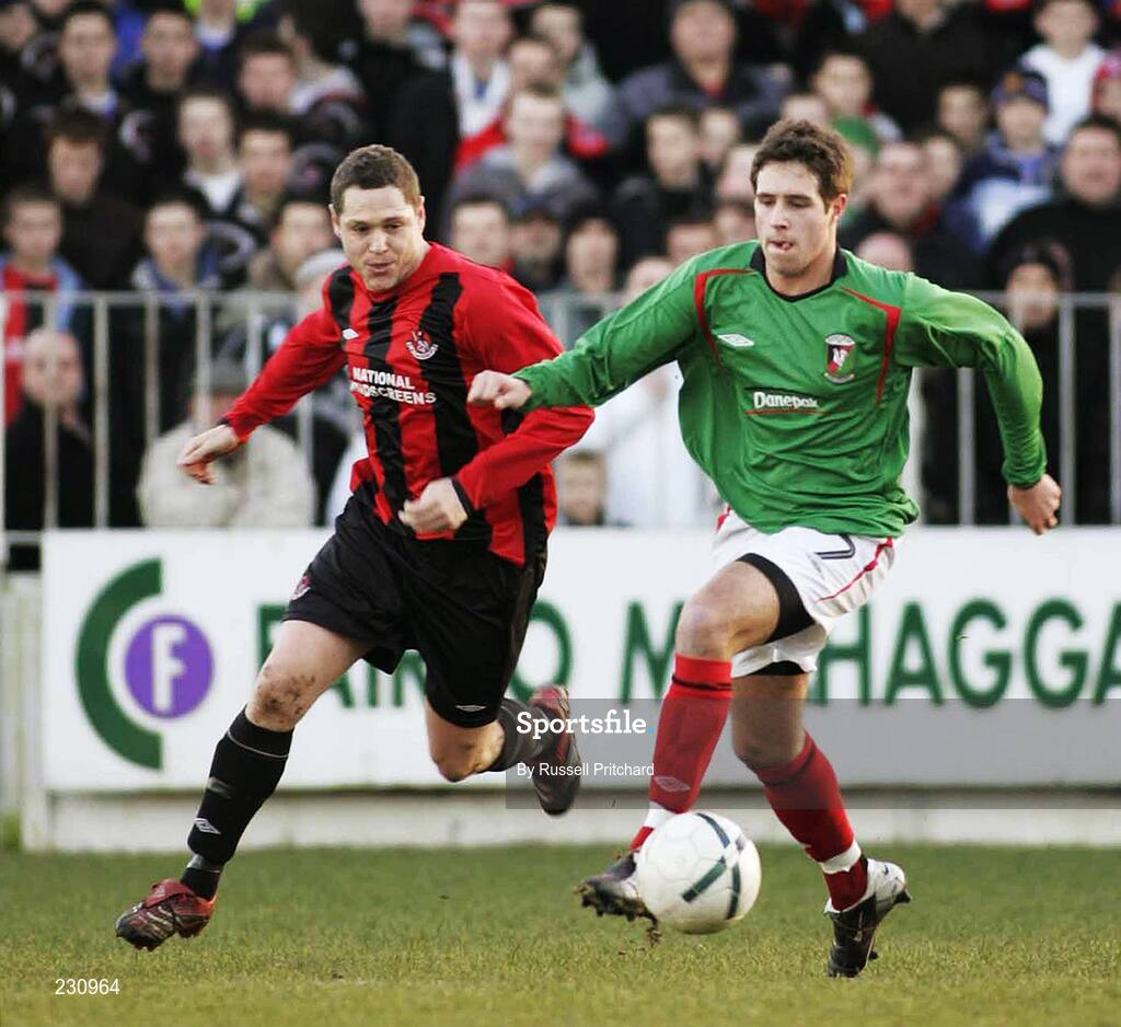 9 December 2006; Colin Beggs, Crusaders, in action against Shaun Ward, Glentoran. Carnegie Premier League, Crusaders v Glentoran, Seaview, Belfast. Picture credit: Russell Pritchard / SPORTSFILE