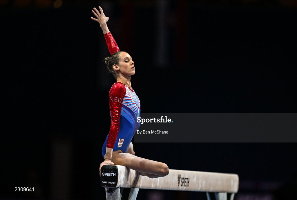 11 August 2022; Naomi Visser of Netherlands competes in the Women's Balance Beam during day 1 of the European Championships 2022 at the Olympiahalle in Munich, Germany. Photo by Ben McShane/Sportsfile