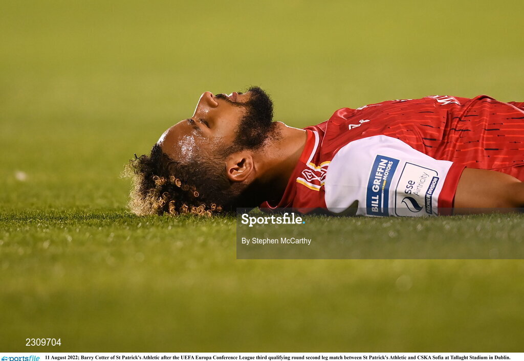 11 August 2022; Barry Cotter of St Patrick's Athletic after the UEFA Europa Conference League third qualifying round second leg match between St Patrick's Athletic and CSKA Sofia at Tallaght Stadium in Dublin. Photo by Stephen McCarthy/Sportsfile