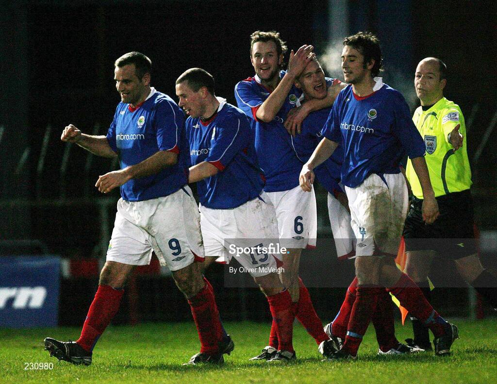 9 December 2006; Peter Thompson, Linfield, second from right, celebrate with Glen Ferguson, Mark Dickson,Tim Mouncey and Michael Gault, after scoring the first goal. Carnegie Premier League, Linfield v Newry City, Windsor Park, Belfast. Picture credit: Oliver McVeigh / SPORTSFILE