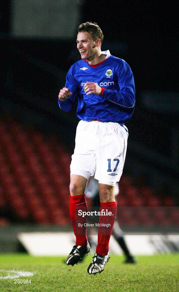 9 December 2006; Linfield's Peter Thompson celebrates after scoring the second goal. Carnegie Premier League, Linfield v Newry City, Windsor Park, Belfast. Picture credit: Oliver McVeigh / SPORTSFILE