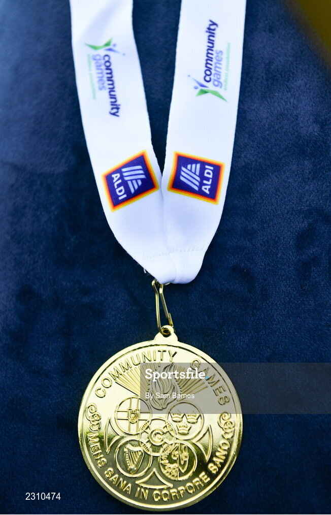 13 August 2022; A general view of a gold medal during the Aldi Community Games National Track and Field Finals that attract over 2,000 children to SETU Carlow Sports Campus in Carlow. Photo by Sam Barnes/Sportsfile