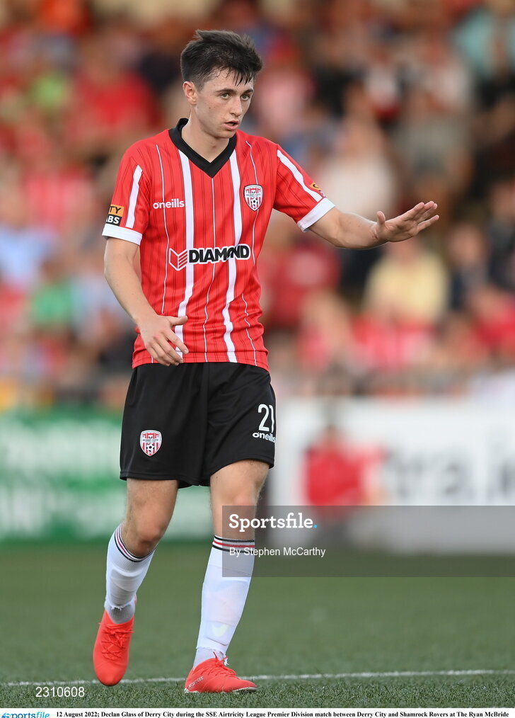 12 August 2022; Declan Glass of Derry City during the SSE Airtricity League Premier Division match between Derry City and Shamrock Rovers at The Ryan McBride Brandywell Stadium in Derry. Photo by Stephen McCarthy/Sportsfile