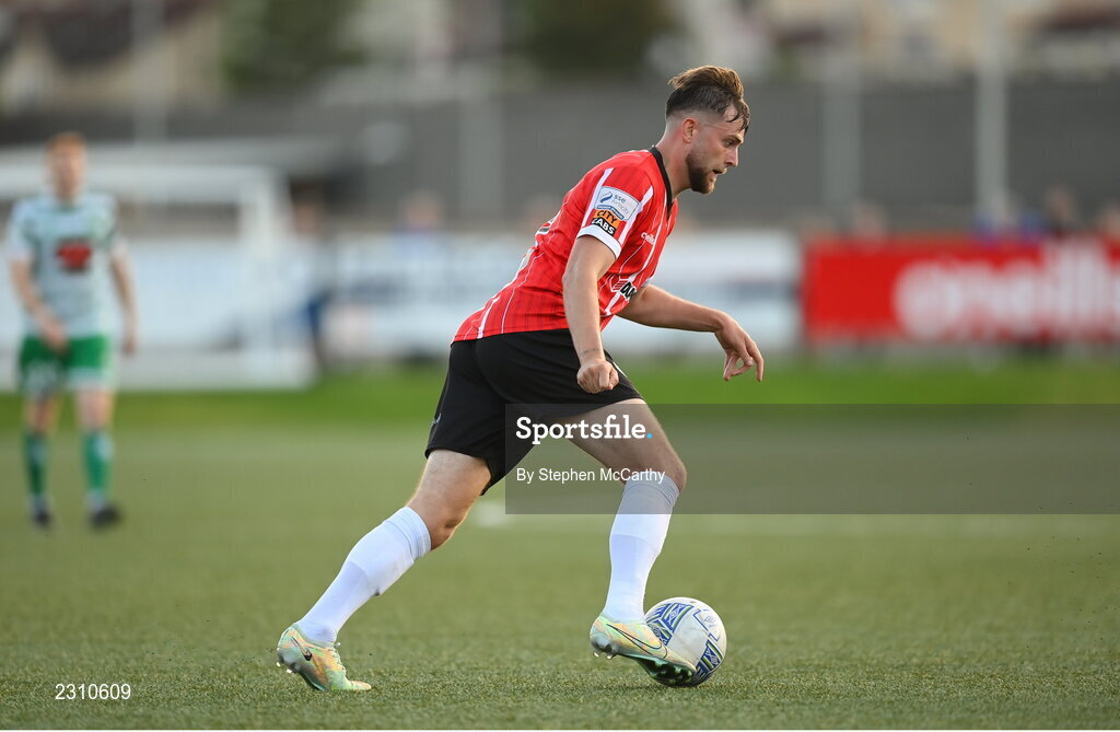 12 August 2022; Will Patching of Derry City during the SSE Airtricity League Premier Division match between Derry City and Shamrock Rovers at The Ryan McBride Brandywell Stadium in Derry. Photo by Stephen McCarthy/Sportsfile