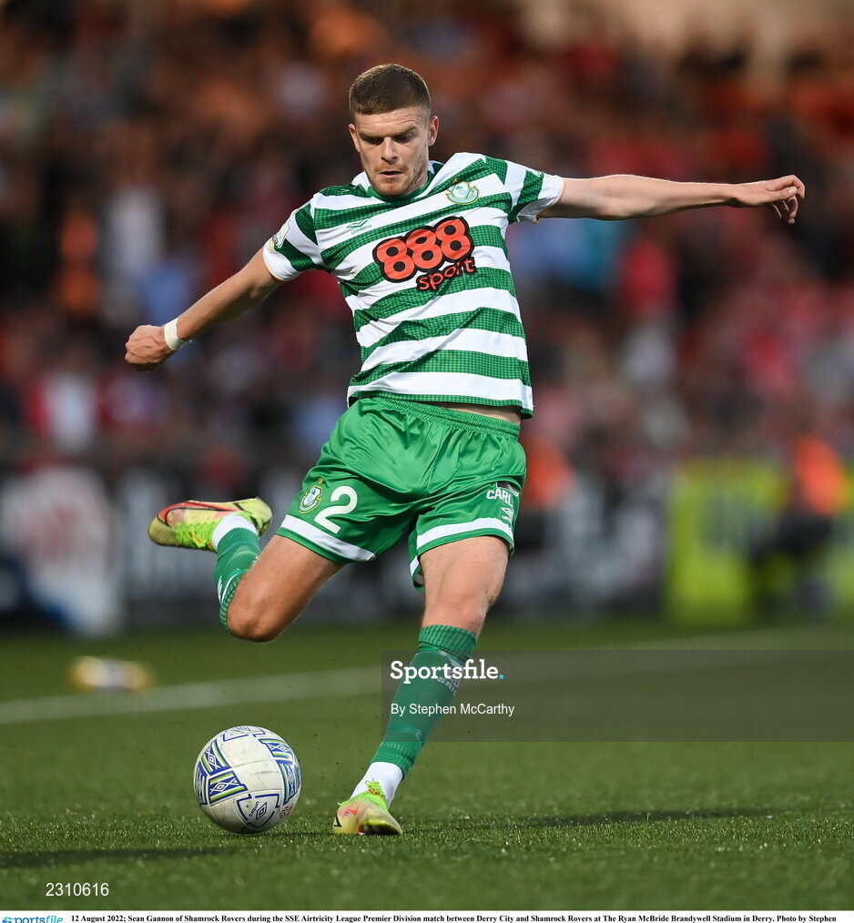 12 August 2022; Sean Gannon of Shamrock Rovers during the SSE Airtricity League Premier Division match between Derry City and Shamrock Rovers at The Ryan McBride Brandywell Stadium in Derry. Photo by Stephen McCarthy/Sportsfile