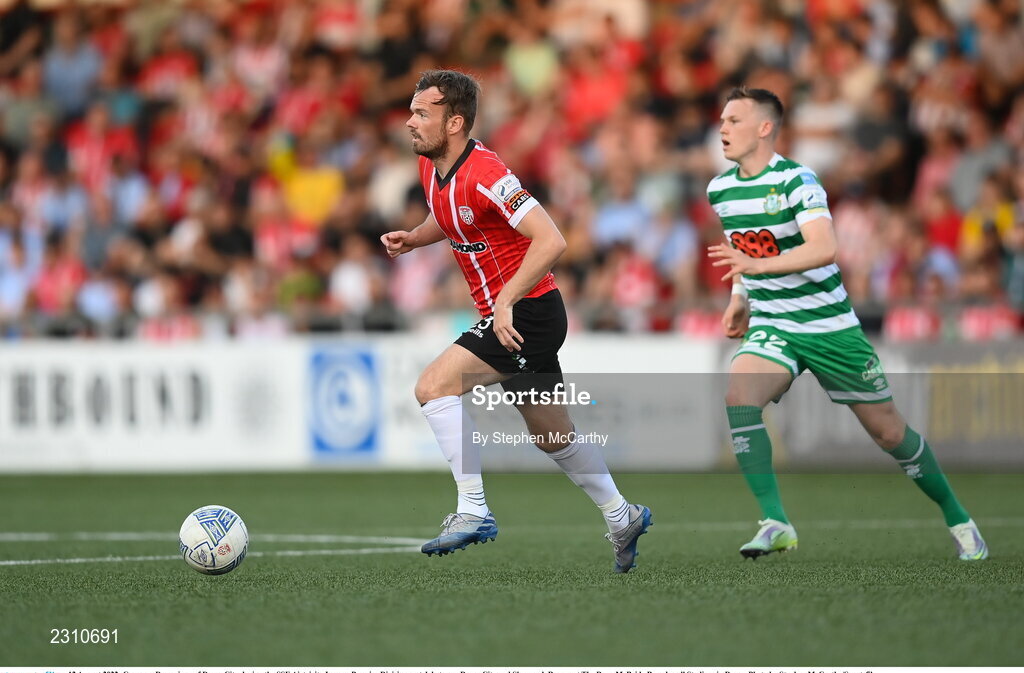 12 August 2022; Cameron Dummigan of Derry City during the SSE Airtricity League Premier Division match between Derry City and Shamrock Rovers at The Ryan McBride Brandywell Stadium in Derry. Photo by Stephen McCarthy/Sportsfile