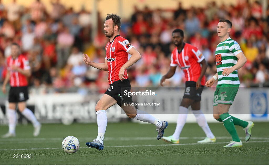 12 August 2022; Cameron Dummigan of Derry City during the SSE Airtricity League Premier Division match between Derry City and Shamrock Rovers at The Ryan McBride Brandywell Stadium in Derry. Photo by Stephen McCarthy/Sportsfile