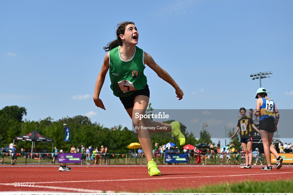 13 August 2022; Emer Purtill, from Limerick, competes in the girls javelin U14 & O12, during the Aldi Community Games National Track and Field Finals that attract over 2,000 children to SETU Carlow Sports Campus in Carlow. Photo by Ramsey Cardy/Sportsfile